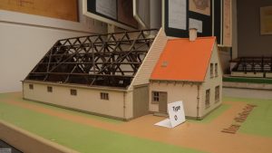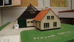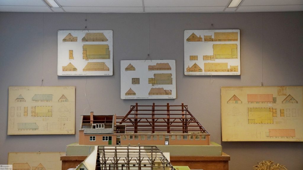 November 2025 – De tentoonstellingsgroep van het Genootschap heeft al haar boerderijenmaquettes uit het archief gehaald. Stuk voor stuk mooie getuigenissen van vakwerk en naar verluidt gemaakt door de timmerlieden van de Directie. Daarnaast hangen er vele tekeningen van de diverse typen boerderijen die er ontworpen en gebouwd zijn in de loop der jaren tot 1942, toen zijn de laatste bedrijven uitgegeven.