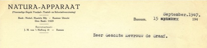 Een beweging waar, zo blijkt uit de opgedoken brief ook Adrie de Graaf een flinke steen aan bijdroeg. Adrie was richting het einde van de oorlog Gewestelijk Voedselofficier voor Noord-Holland geworden. Maar voor intimi van het Natura netwerk was De Graaf al veel langer een actief lid. Het bestuur laat mevrouw De Graaf in 1947 weten haar man ‘te herdenken met grote dankbaarheid voor de vele steun en prettige samenwerking die wij voor de samenwerking in het belang van ons Vaderland van Uw man mochten ontvangen.’