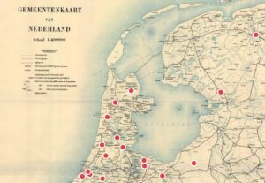 Uitsnede uit een kaart van Nederland. De rode stippen verwijzen naar plaatsen waar Natura leden zaten. In Noord-Holland: Middenmeer, Oudkarspel, Heiloo, Zaandam, Haarlem, Amsterdam, Hoofddorp, Bussum, Hilversum. Bron: natura-apparaat.nl
